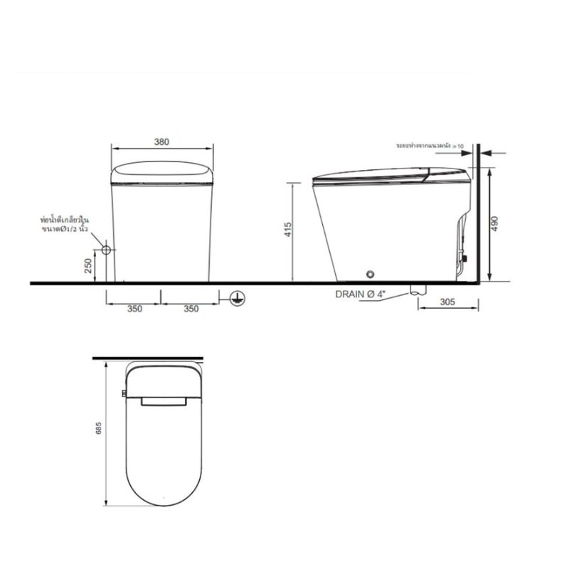 ประเภท : สุขภัณฑ์ชิ้นเดียว ท่อลงพื้น